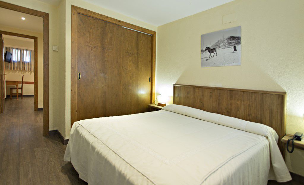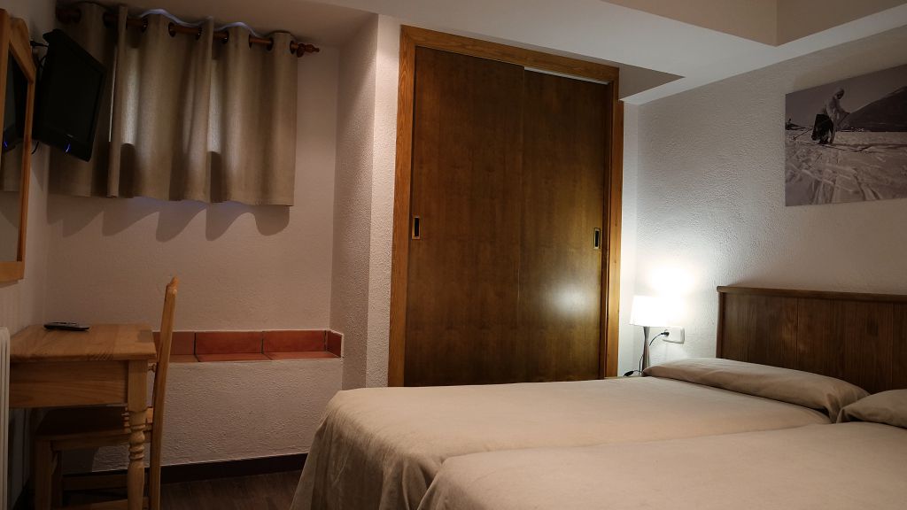 They are two adjoining rooms, one with a double bed and the other one with two beds that share a bathroom. They are located on the ground floor and are accessed directly from outside. It has a small private terrace with table and chairs. It is a perfect room for a family with two children. The room has heating, telephone, safe and TV, as well as a complete bathroom with hairdryer. There is also free Wifi service.